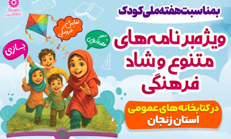 به مناسبت هفته ملی کودک، کتابخانه‌های عمومی استان زنجان با اجرای ویژه‌برنامه های شاد و متنوع فرهنگی در سراسر استان، میزبان کودکان و خانواده‌ها خواهند بود.